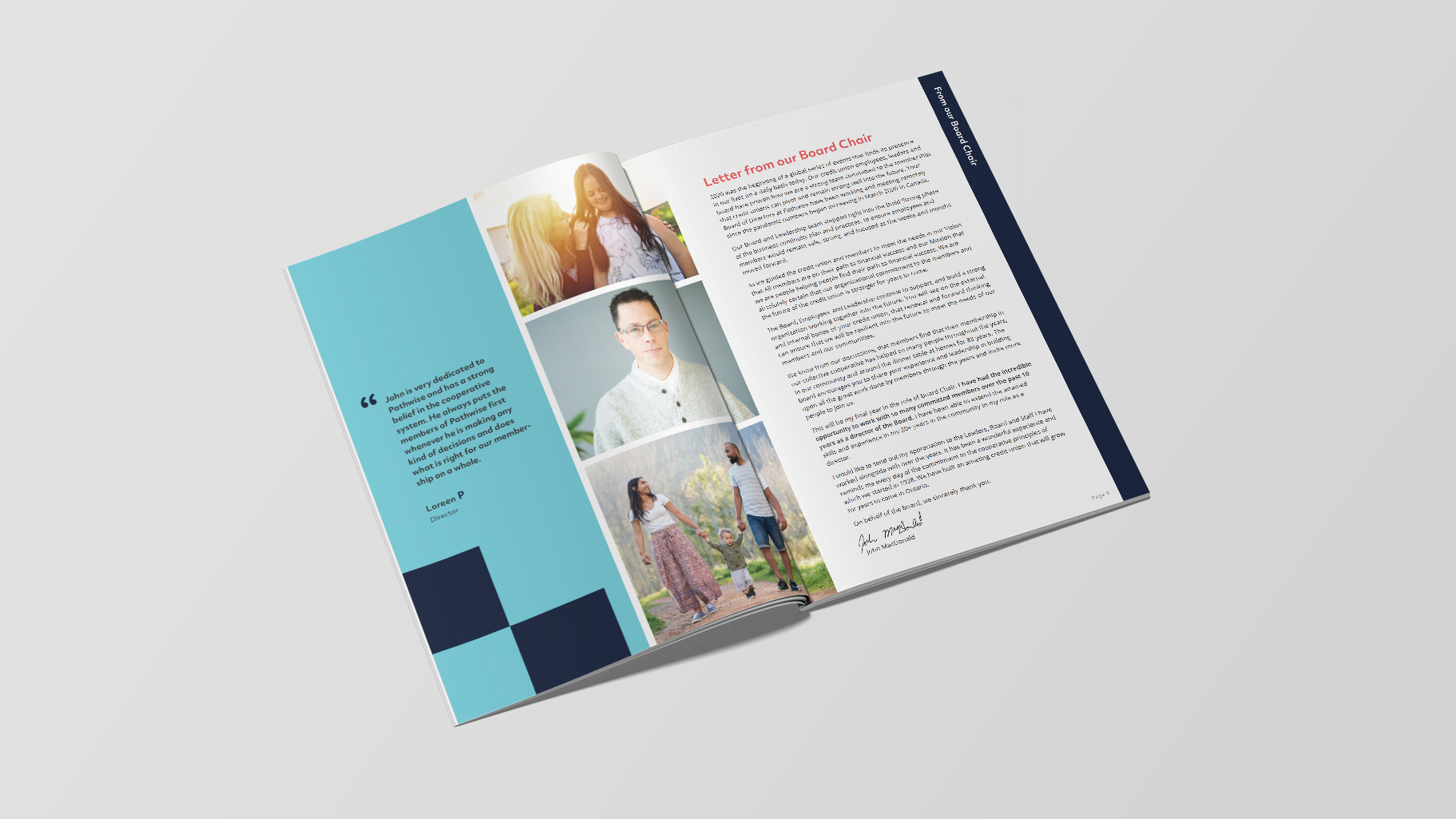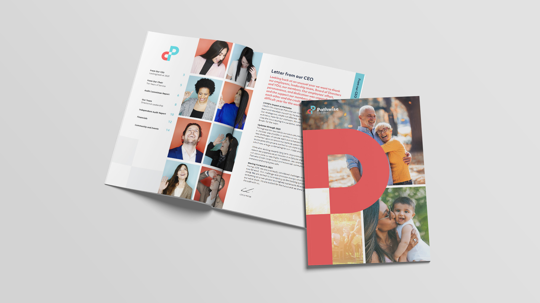 Designed an annual report for Pathwise Credit Union to highlight the fiscal position of the financial institution and serve as a bold statement about who Pathwise is, what they do, and how they are succeeding.